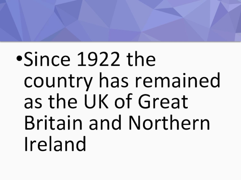 Слайд 16Since 1922 the country has remained as the UK of Great