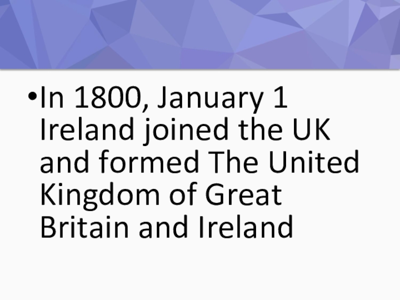 Слайд 15In 1800, January 1 Ireland joined the UK and formed The