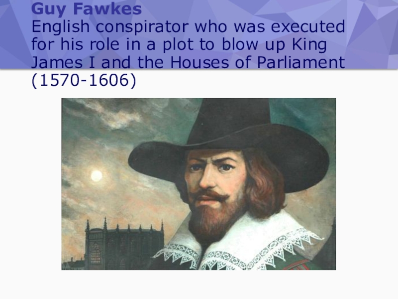 Слайд 11Guy Fawkes  English conspirator who was executed for his role in a