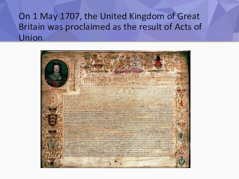 Слайд 14On 1 May 1707, the United Kingdom of Great Britain was