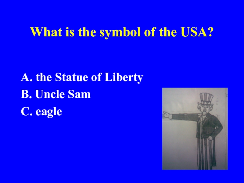 What is the symbol of the USA?A. the Statue of Liberty  B. Uncle SamC. eagle