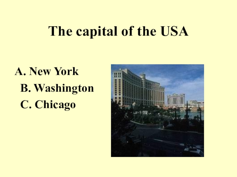The capital of the USA New York        B. WashingtonC. Chicago