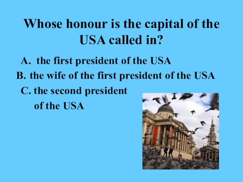 Слайд 8Whose honour is the capital of the USA called in?