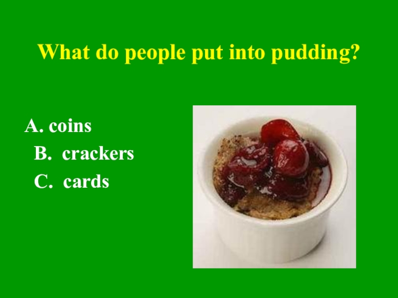 What do people put into pudding?coins      B. crackers C. cards