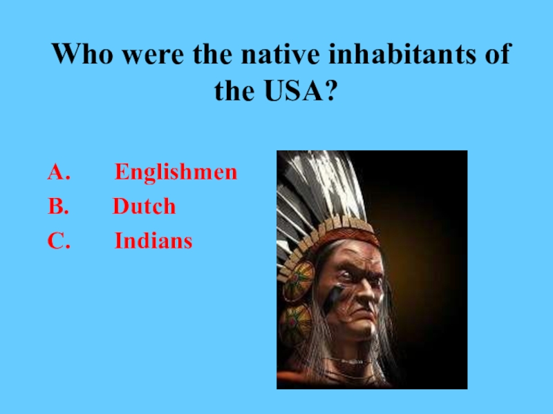 Who were the native inhabitants of the USA?   A.    Englishmen