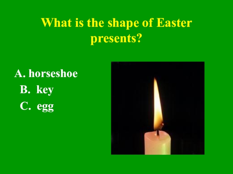 What is the shape of Easter presents?horseshoe   B. keyC. egg