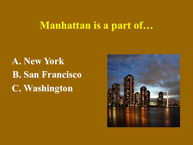 Слайд 34Manhattan is a part of…