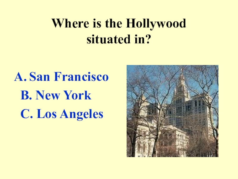 Слайд 13Where is the Hollywood situated in?