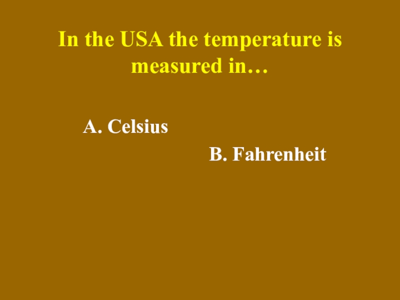 In the USA the temperature is measured in…     A. Celsius