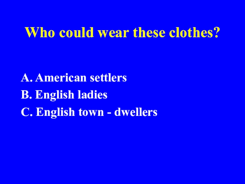 Who could wear these clothes? A. American settlers B. English ladiesC. English town - dwellers