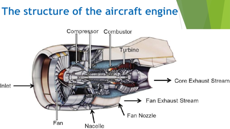 Слайд 10The structure of the aircraft engine