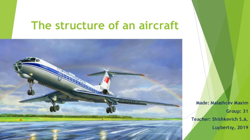 The structure of an aircraftMade: Malashcev MaximGroup: 31Teacher: Shishkevich S.A.Luybertsy, 2019