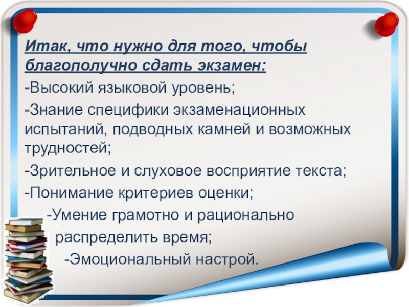 Слайд 26Итак, что нужно для того, чтобы благополучно сдать экзамен: