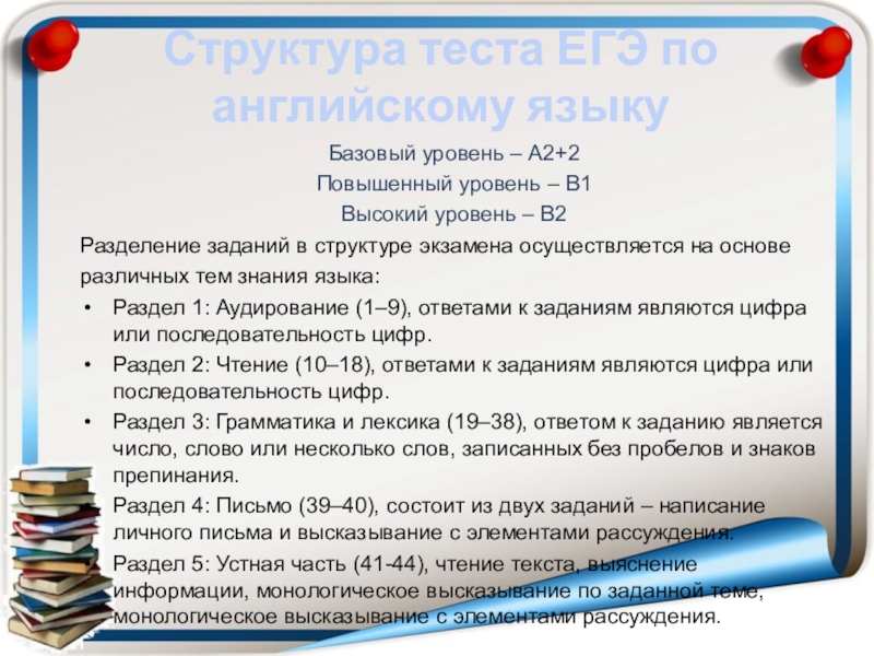Слайд 3Структура теста ЕГЭ по английскому языку