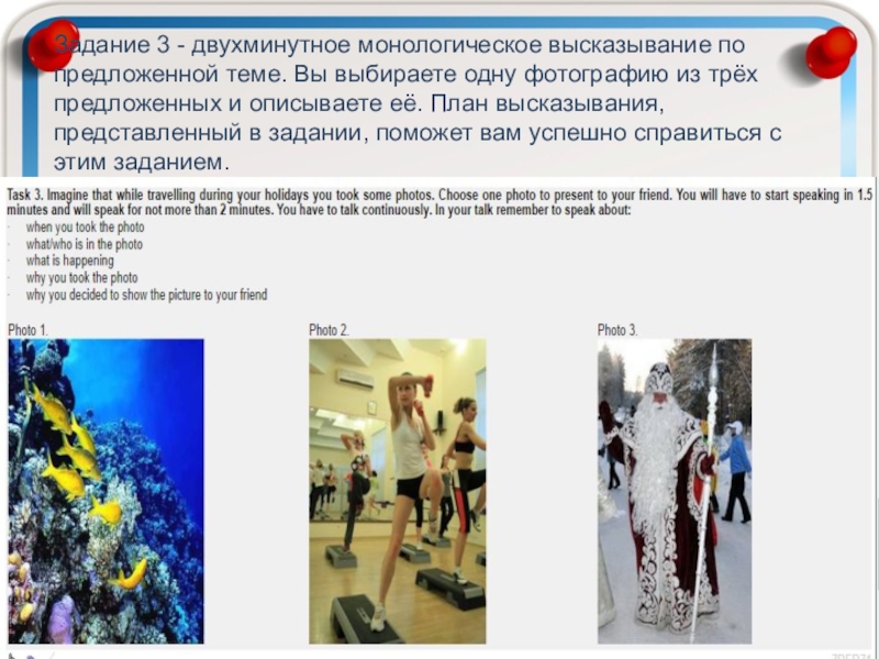 Слайд 22Задание 3 - двухминутное монологическое высказывание по предложенной теме. Вы выбираете