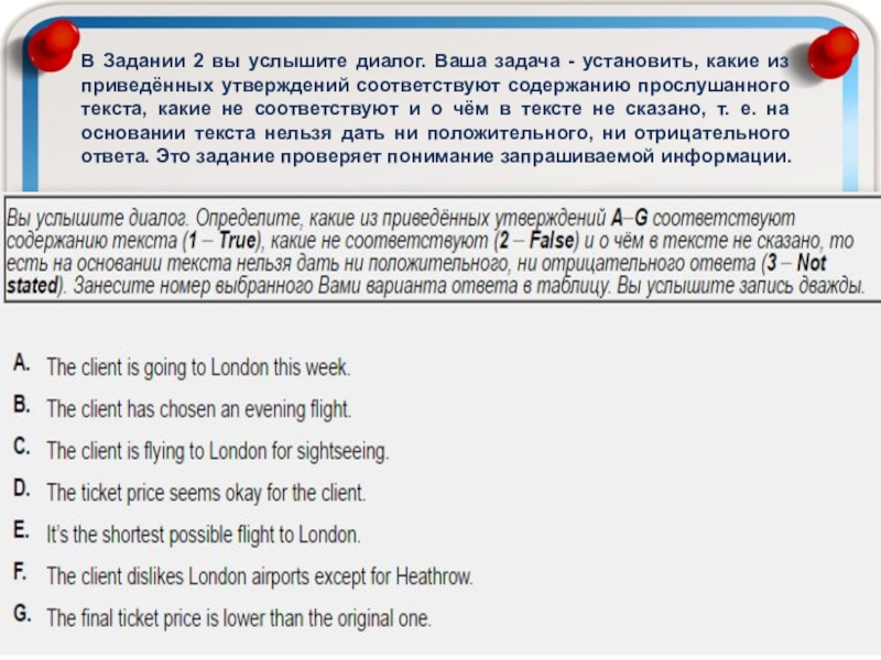 Слайд 6В Задании 2 вы услышите диалог. Ваша задача - установить, какие