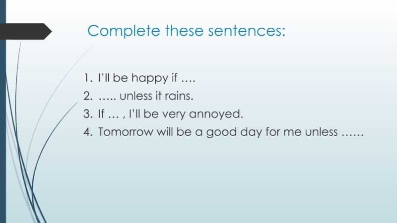 Complete these sentences:I’ll be happy if ….….. unless it rains.If … , I’ll be very annoyed.Tomorrow will