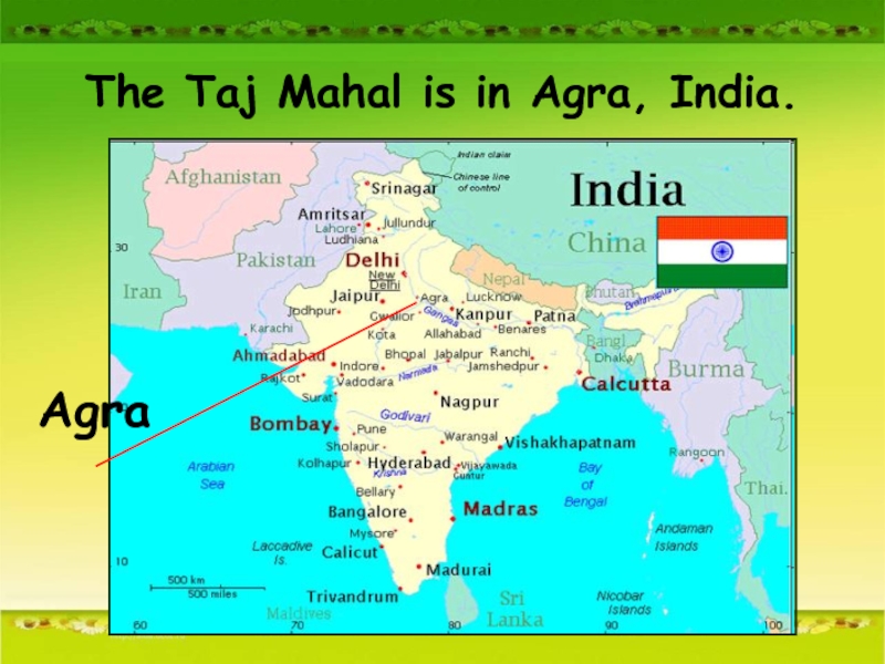 Слайд 10The Taj Mahal is in Agra, India.