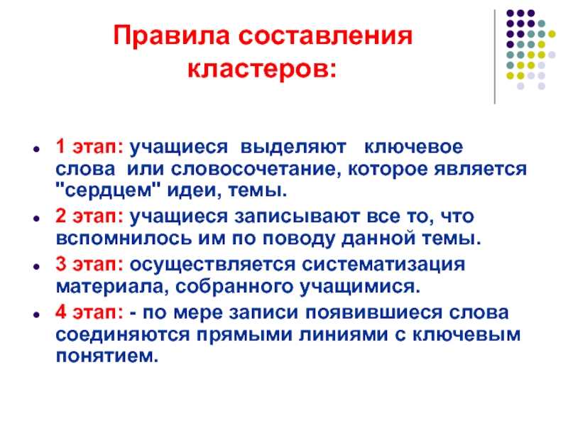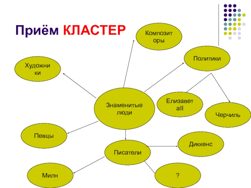 в определенном порядке в виде грозди. Смысл приёма заключается в попытке систематизировать имеющиеся знания.