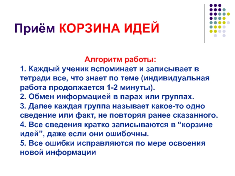 Слайд 13Приём КОРЗИНА ИДЕЙ
