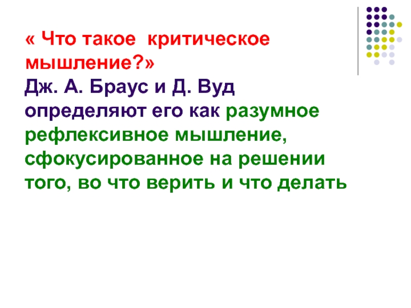 определяют его как разумное рефлексивное мышление, сфокусированное на решении того, во что верить и что делать
