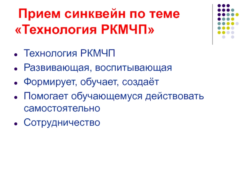 Слайд 28 Прием синквейн по теме «Технология РКМЧП»
