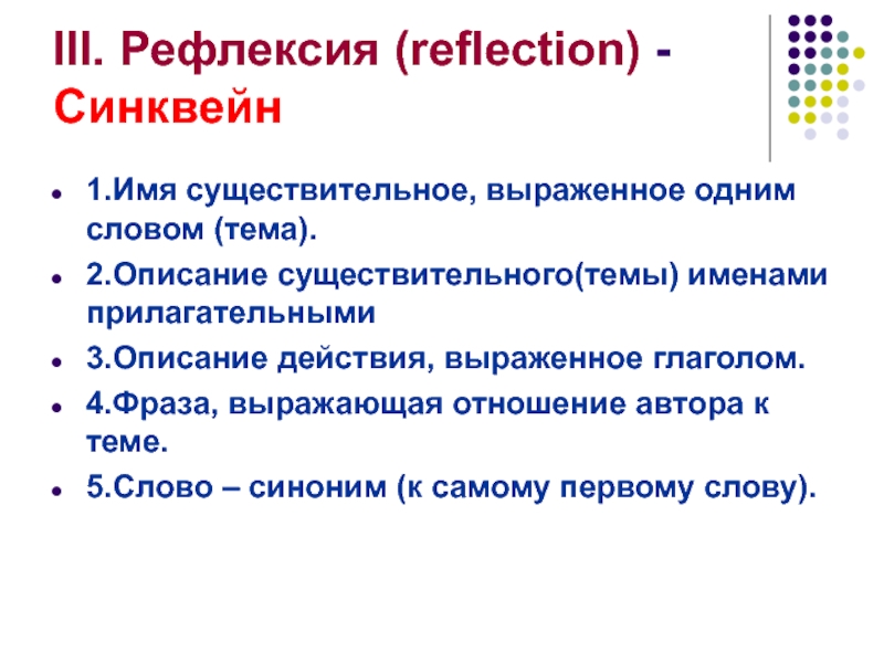 Слайд 27III. Рефлексия (reflection) -Синквейн