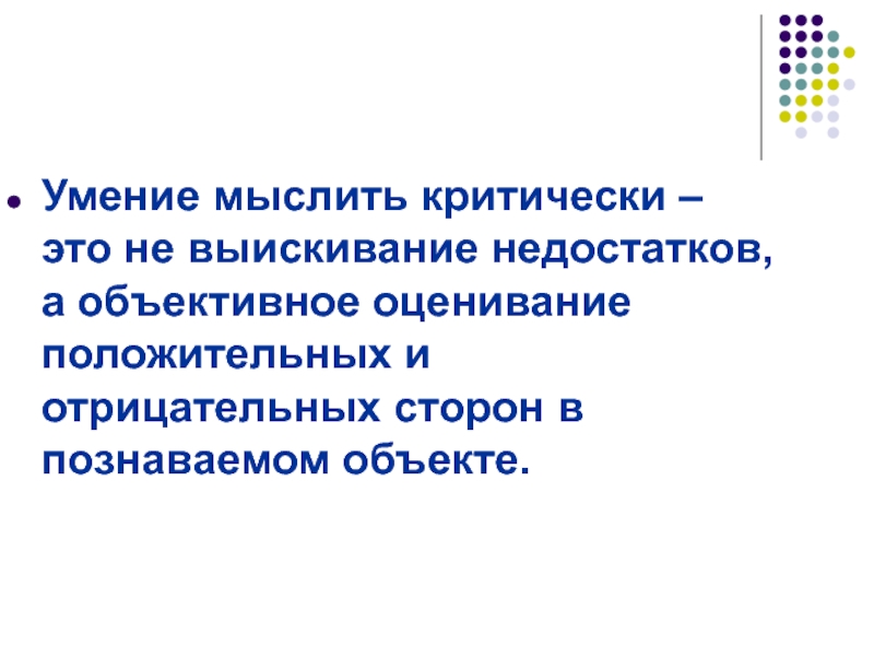 Слайд 4Умение мыслить критически – это не выискивание недостатков, а объективное оценивание