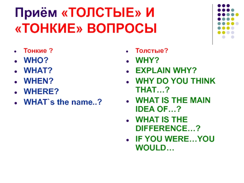 Слайд 23Приём «ТОЛСТЫЕ» И «ТОНКИЕ» ВОПРОСЫ