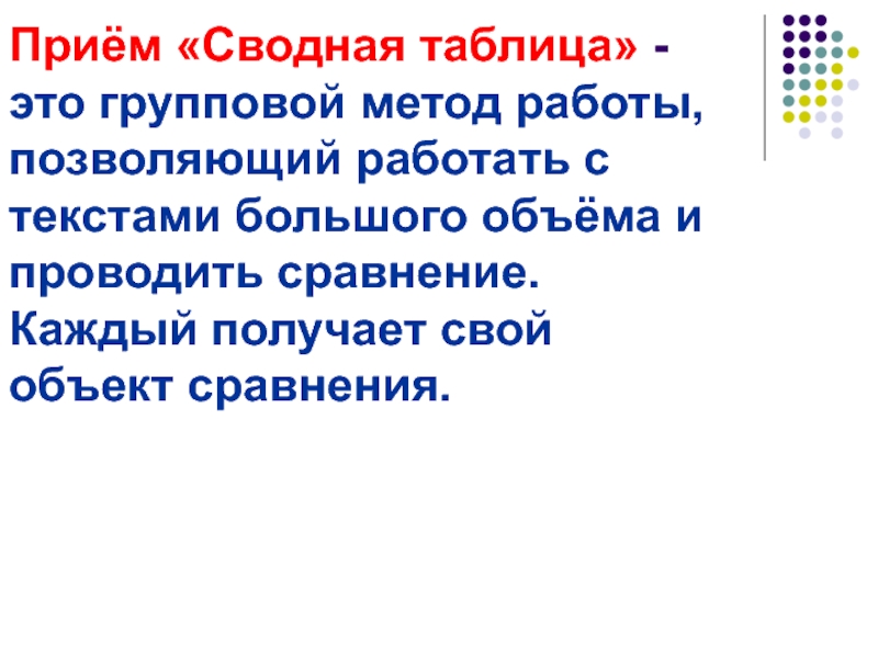 Слайд 25Приём «Сводная таблица» - это групповой метод работы, позволяющий работать с