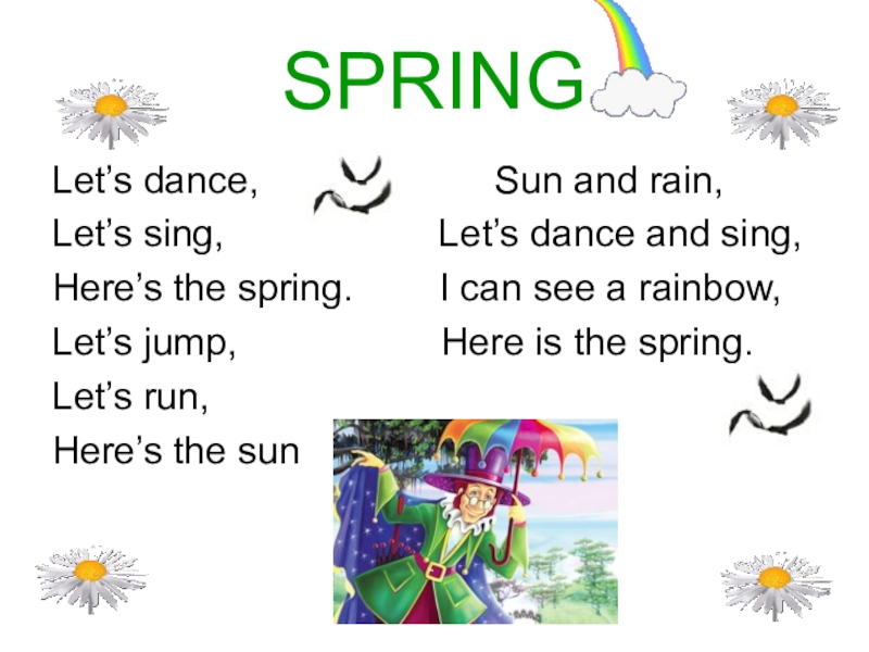 SPRING Let’s dance,           Sun and rain,Let’s sing,