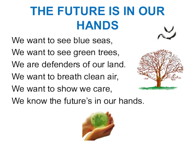 THE FUTURE IS IN OUR HANDSWe want to see blue seas,We want to see green trees,We are