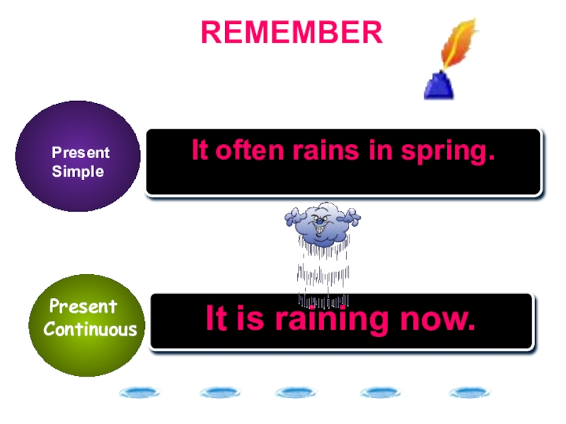 REMEMBER  It often rains in spring.It is raining now.PresentSimple PresentContinuous