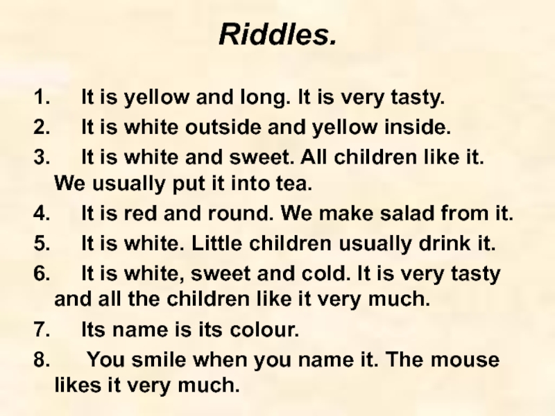6. It is white, sweet and cold. It is very tasty and all the children like it very much.