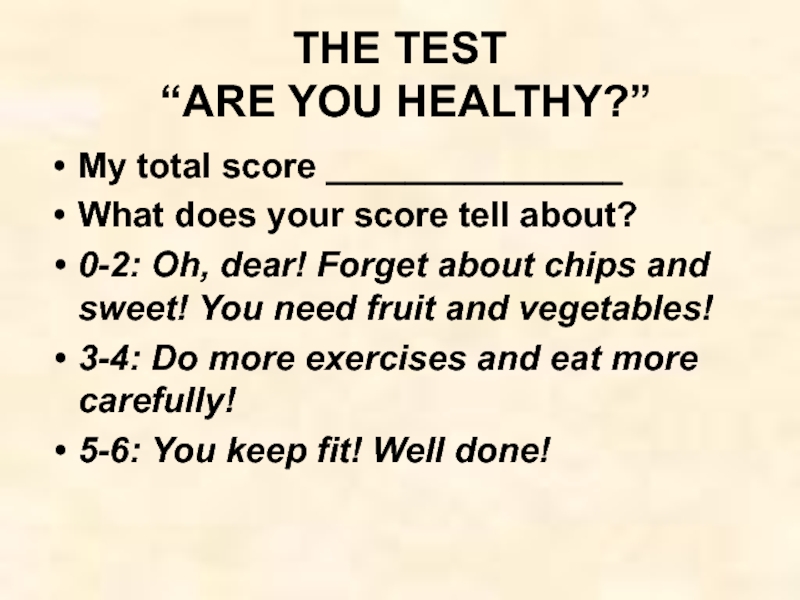 0-2: Oh, dear! Forget about chips and sweet! You need fruit and vegetables!