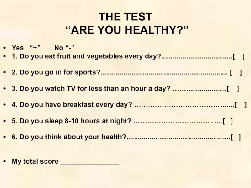 5. Do you sleep 8-10 hours at night? …………………………….…..[ ]