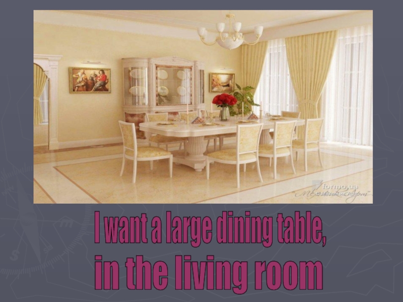 Слайд 4I want a large dining table,