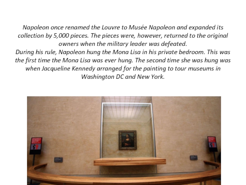 Слайд 7 Napoleon once renamed the Louvre to Musée Napoleon and expanded its collection by