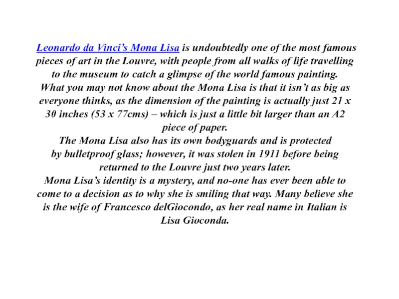 Слайд 5 Leonardo da Vinci’s Mona Lisa is undoubtedly one of the most famous