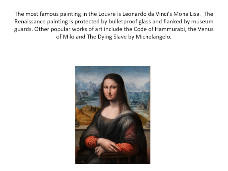 Слайд 4 The most famous painting in the Louvre is Leonardo da Vinci’s