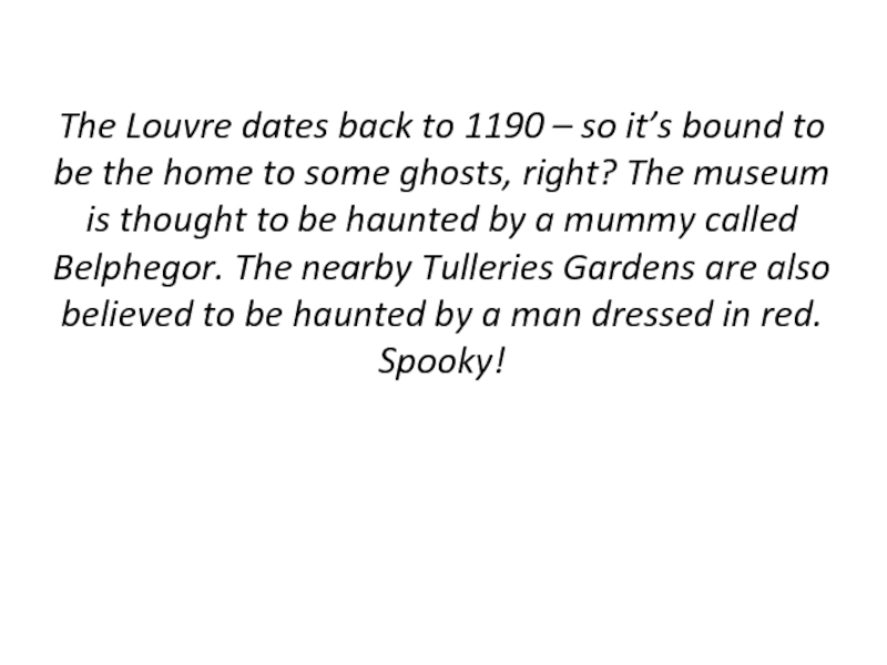 be the home to some ghosts, right? The museum is thought to be haunted by a mummy called Belphegor. The nearby Tulleries Gardens are also believed to be haunted by a man dressed in red. Spooky!