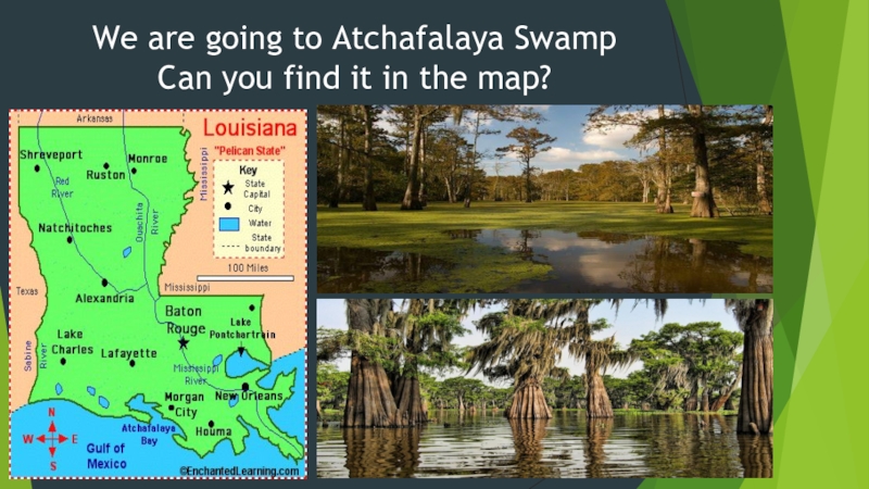 Слайд 3We are going to Atchafalaya Swamp Can you find it in the