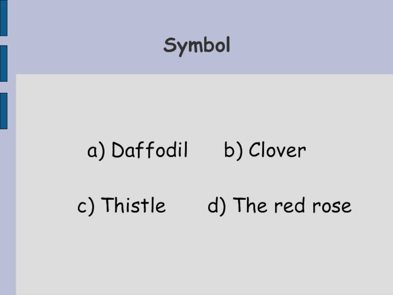 a) Daffodil   b) Clover   c) Thistle    d) The red roseSymbol