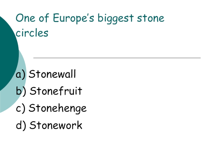 a) Stonewallb) Stonefruitc) Stonehenged) StoneworkOne of Europe’s biggest stone circles