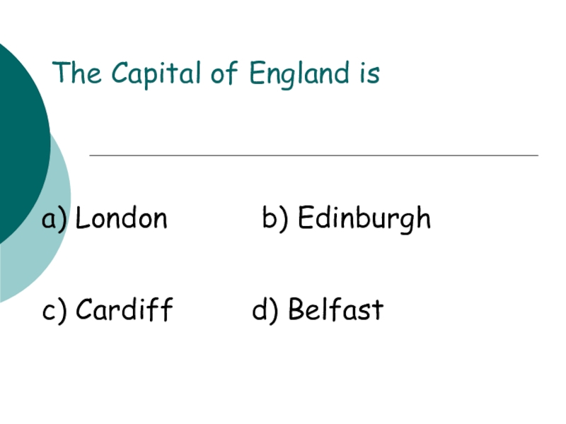 The Capital of England isa) London      b) Edinburghc) Cardiff