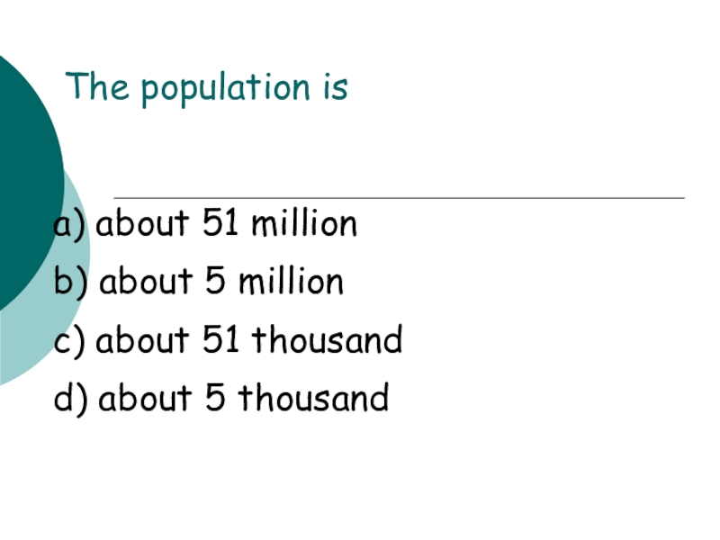 The population isa) about 51 millionb) about 5 millionc) about 51 thousandd) about 5 thousand