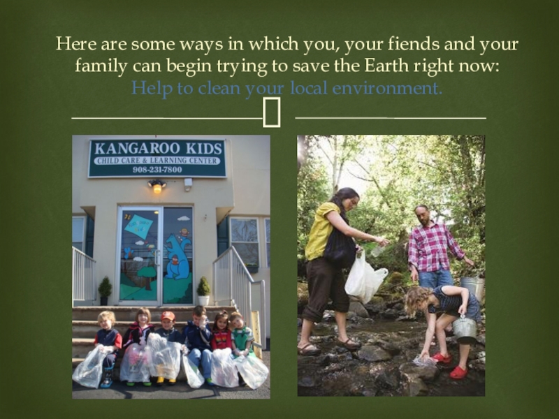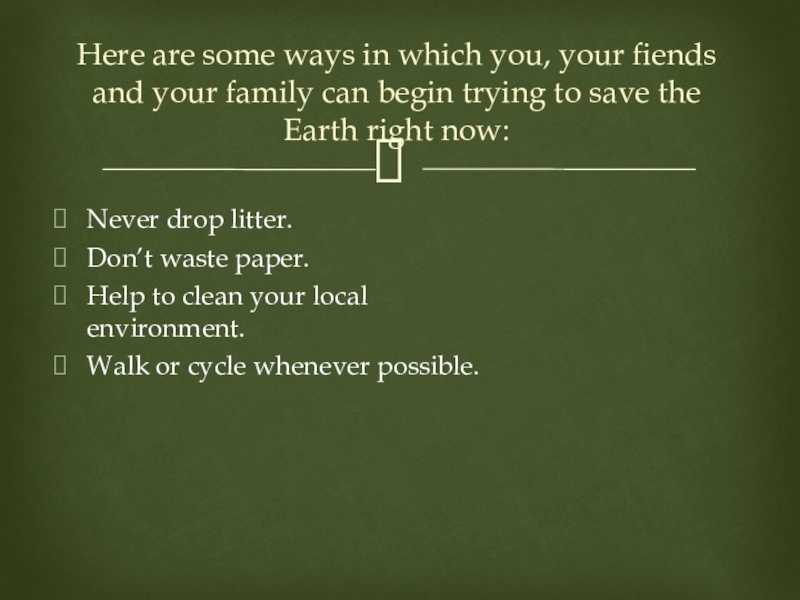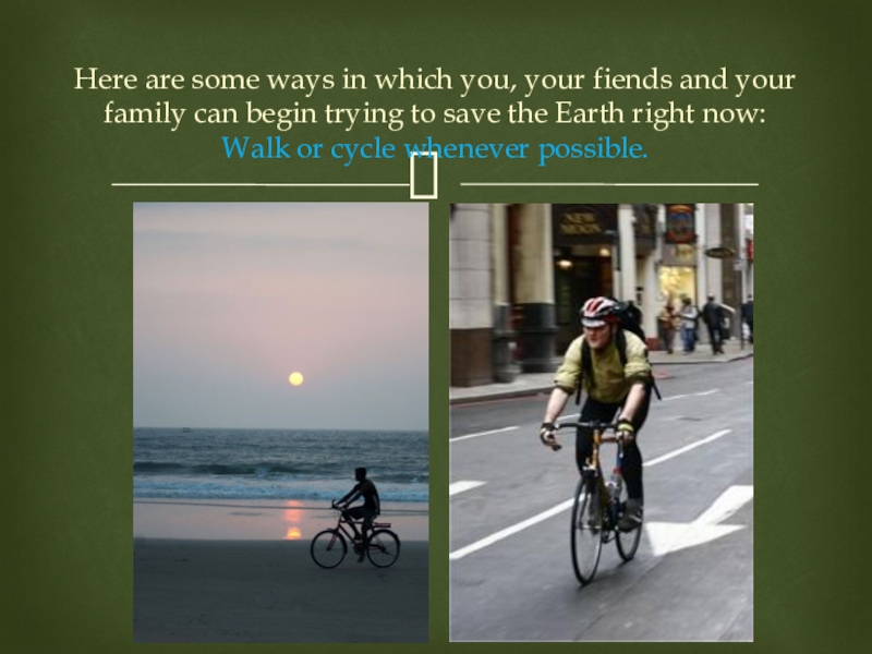 Here are some ways in which you, your fiends and your family can begin trying to save the Earth right now: