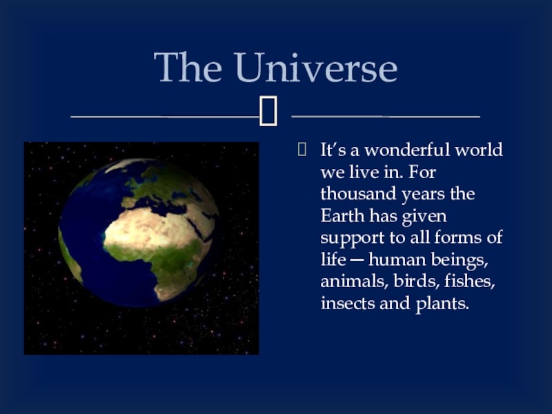 the Earth has given support to all forms of life ─ human beings, animals, birds, fishes, insects and plants.