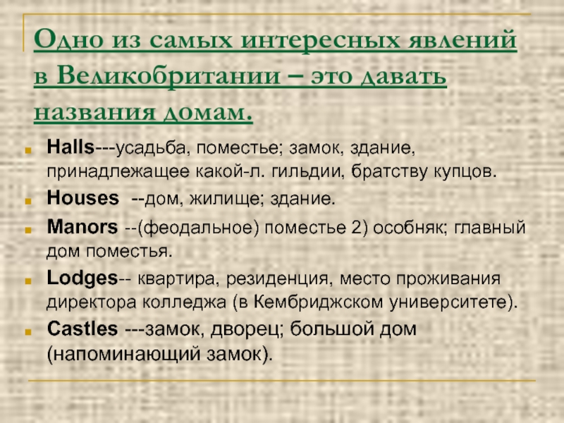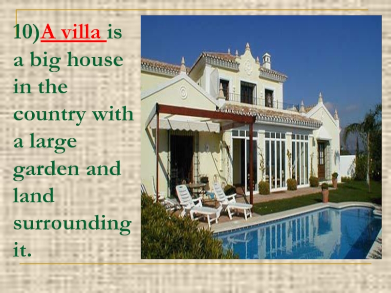 Castles ---замок, дворец; большой дом (напоминающий замок).
