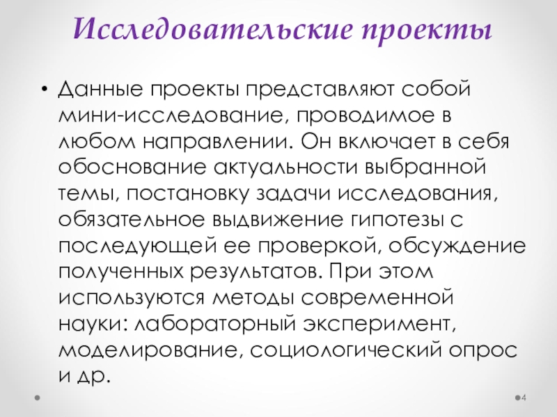 Данные проекты представляют собой мини-исследование, проводимое в любом направлении. Он